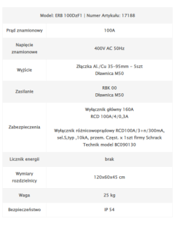 Parametry techniczne: